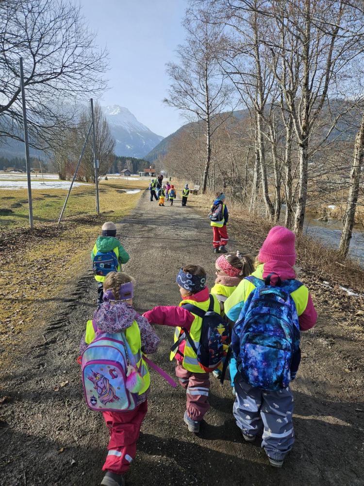 Bei strahlendem Wetter machte sich die Fröschegruppe am 6. März auf den Weg zu einem kleinen Abenteuer in der Natur. Mit dem Bus fuhren wir gemeinsam nach Ehrwald. Von dort aus wanderten wir zu Fuß durch das schöne Moos zurück Richtung Lermoos.